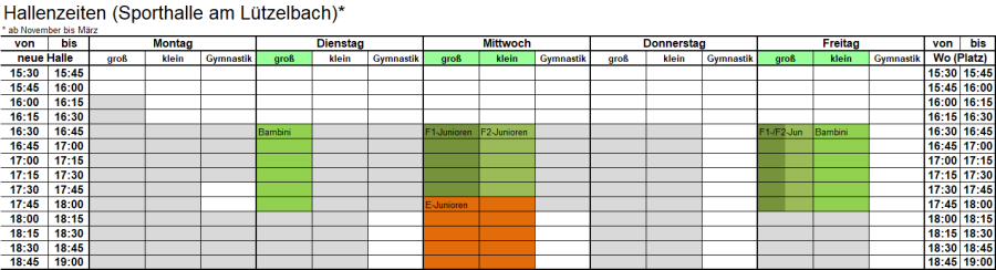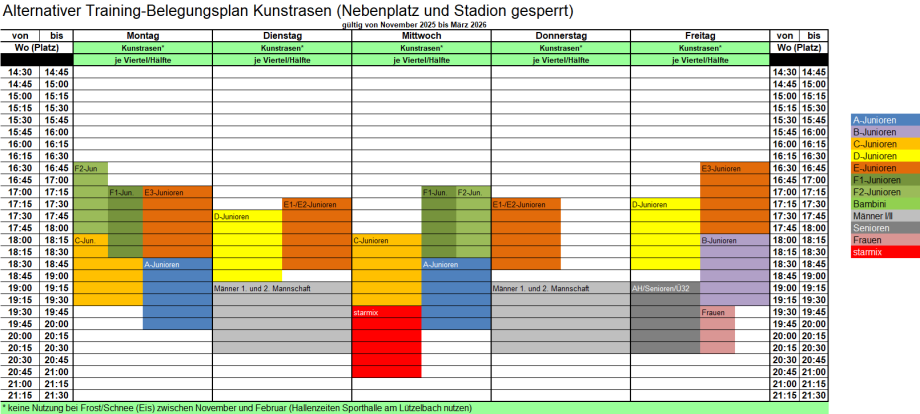 Trainingszeiten Kunstrasenplatz (Winterhalbjahr)
