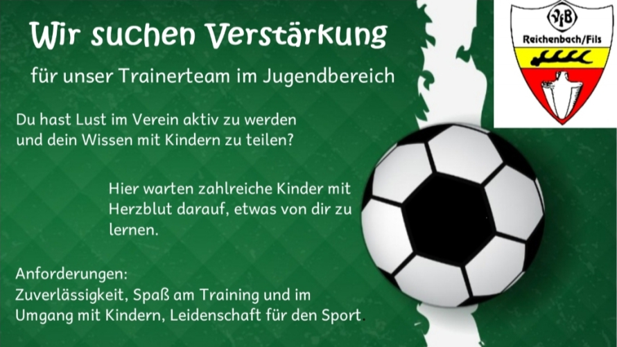 Unsere Leidenschaft zum Fussball wächst und spricht sich herum ! Die Jungs und Mädels wollen wieder kicken ! Der VfB Reichenbach möchte die Generation Corona/YouTuber wieder auf das Feld locken und tolle Momente und Kamaradschaft fördern ! Um den großen Andrang jedoch gerecht zu werden und jedem jungen Kicker und jeder jungen Kickerin die besten Möglichkeiten Rund um den Fussballsport bieten zu können - SUCHEN WIR DICH !!